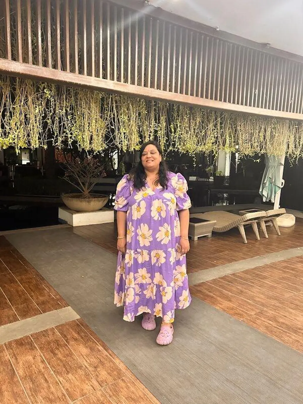 Style Note: Pair this dreamy lavender maxi dress with neutral sandals, gold-toned hoops, and a straw hat for a relaxed resort look. Add a crossbody sling to complete your chic vacation vibe.